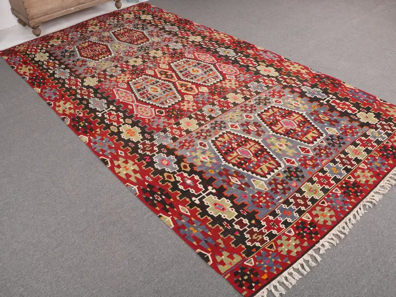 5.4x10.5 ft Türk Halısı, Kilim Halısı, Kırmızı Çiçekli Yün Halı