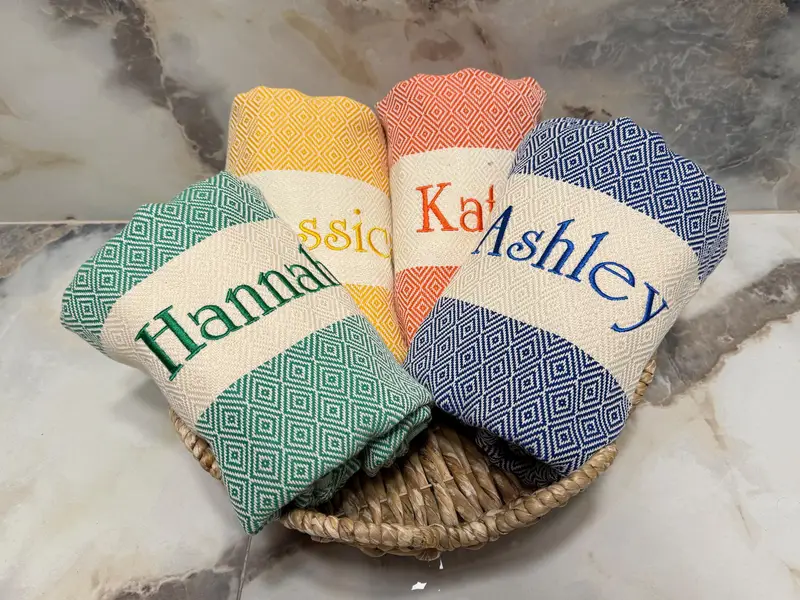 Kişiye Özel Türk Plaj Havlusu: Nakışlı Pamuk Peştemal, 100x180 cm