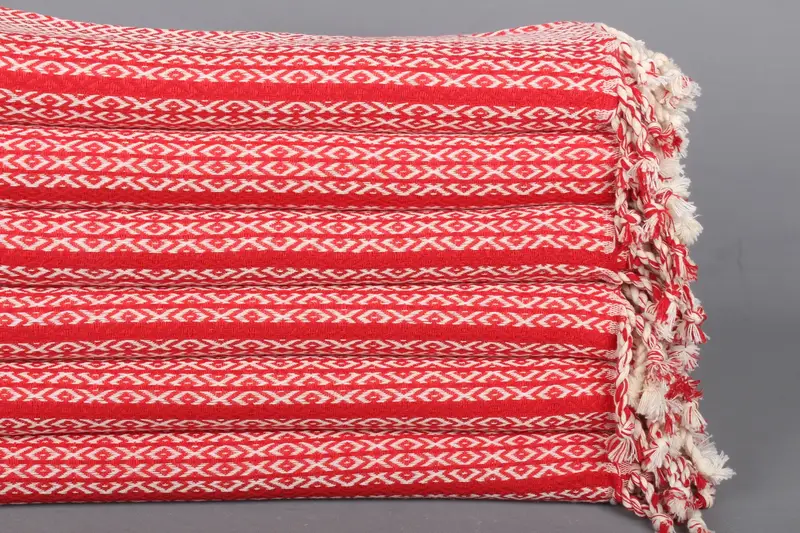 Monogramlı Türk Pamuğu Kırmızı ve Bej Havlu, 40x71 İnç