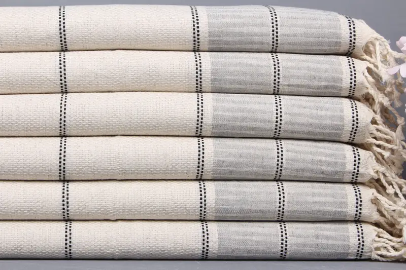 Özel İşlemeli El Havlusu Koyu Gri Çizgili Pamuk, 20x40 İnç