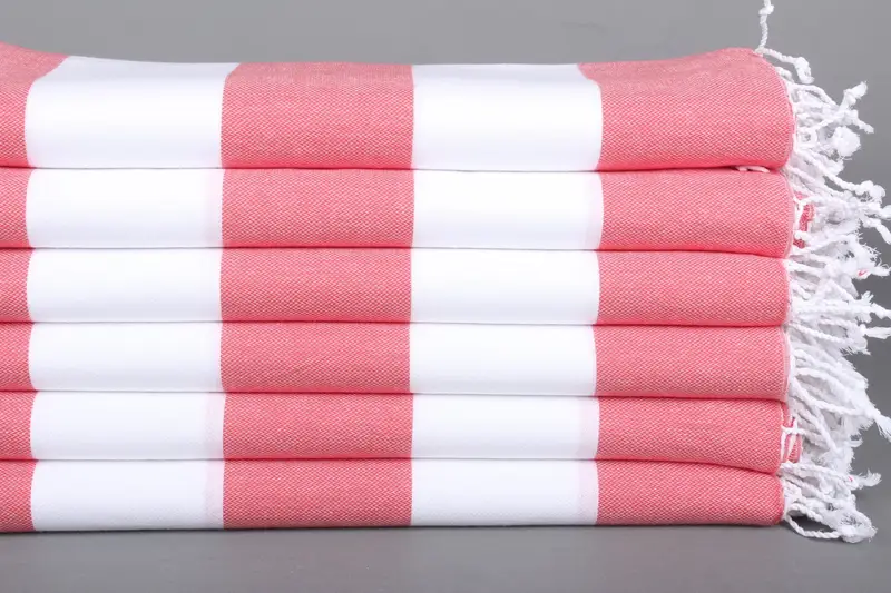 Türk Plaj Havlusu Kırmızı Pamuk Çizgili, 40x71 İnç