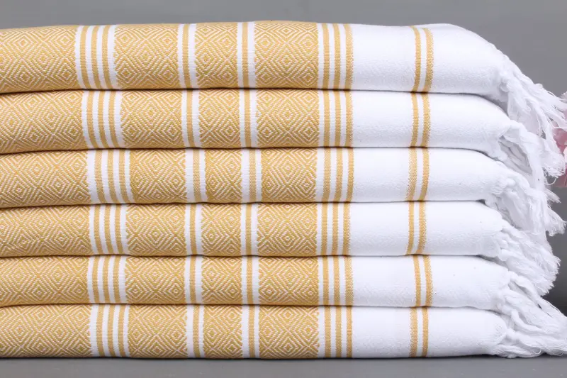 El Havlusu Türk Organik Pamuk Hardal-Beyaz, 18x40 İnç