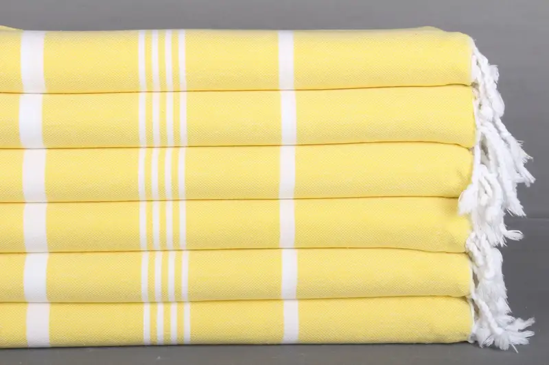 Plaj Havlusu Kişiye Özel Türk Pamuk Sarı Çizgili, 40x71 İnç
