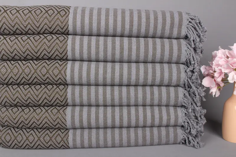 Özel Haki Yeşil Türk Plaj Havlusu Organik Pamuk, 40x70 İnç