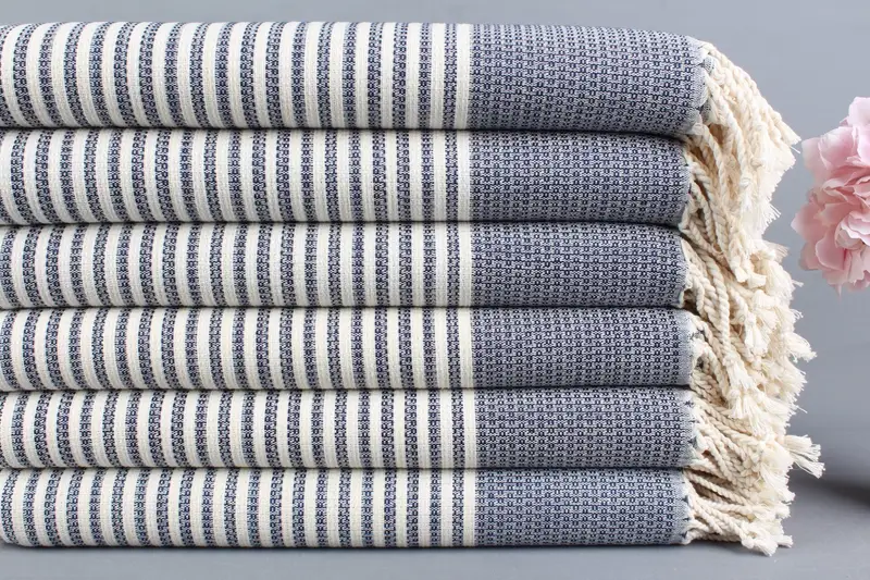 Kişiye Özel Türk Plaj Havlusu Lacivert Çizgili Organik Pamuk 40x67 İnç