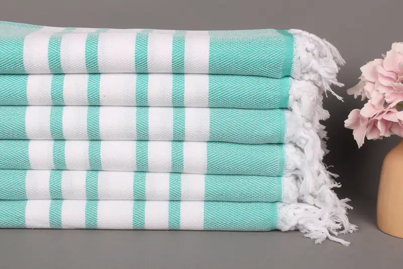 Chevron Havlu Organik Pamuklu Banyo Havlusu Benetton Yeşil, 36x67 İnç