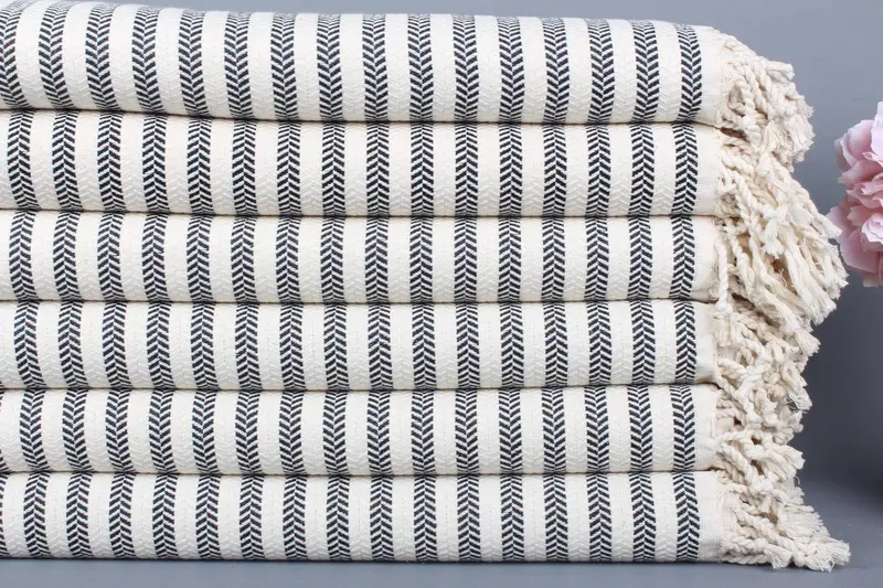 Organik Pamuklu Plaj Havlusu Siyah Chevron, 40x71 İnç