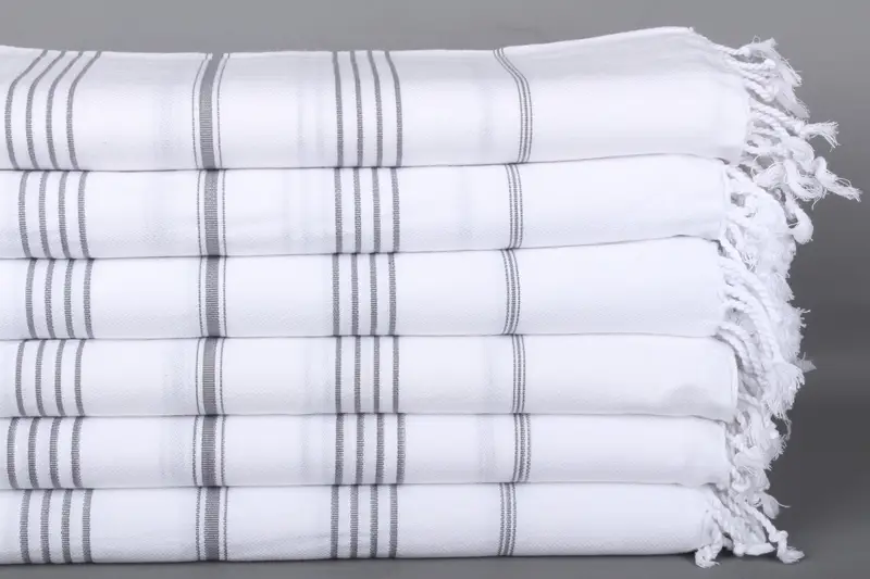 Koyu Gri Pamuk Havlu Çizgili Plaj Havlusu, 40x71 İnç