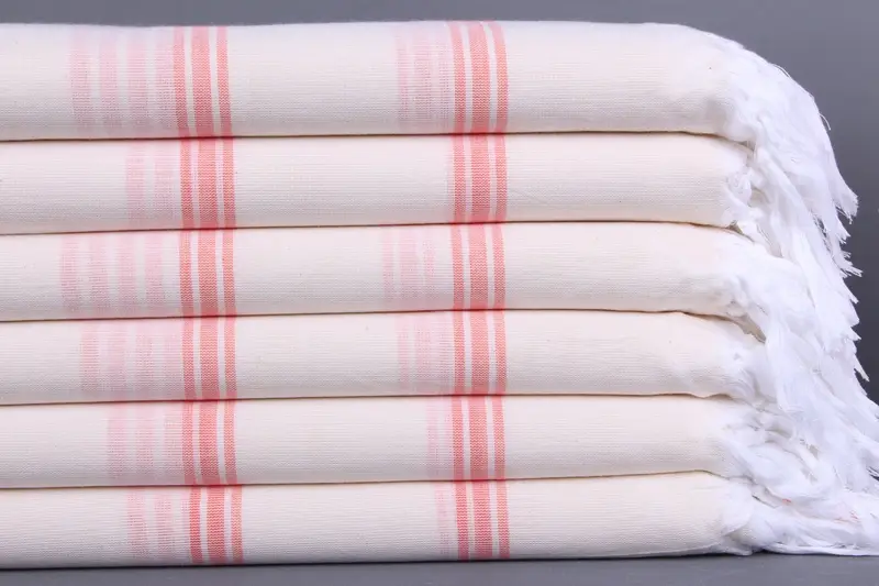 Kişiye Özel Organik Mercan Çizgili Banyo Havlusu, Bej, 40x71 İnç