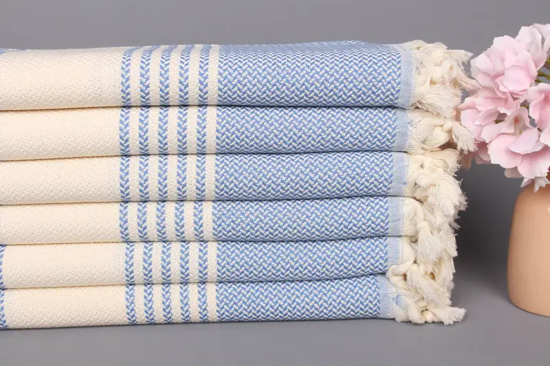 Parliament Mavi Pamuklu Havlu Çizgili, 40x71 İnç, Organik