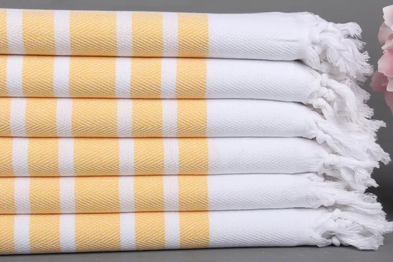 Kişiye Özel Türk Plaj Havlusu Hardal Şerit, Organik Pamuk, 40x71 İnç