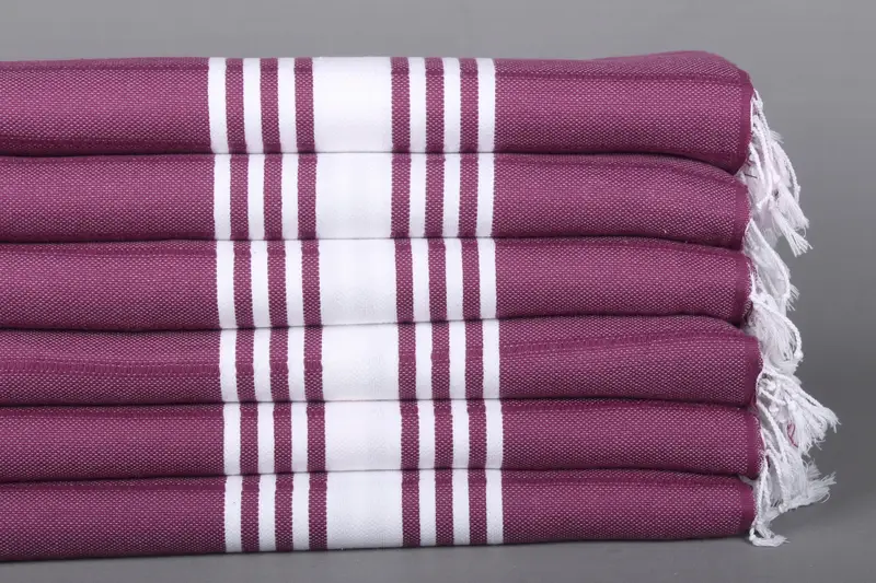 Koyu Mor Pamuk Havlu Çizgili, Nedime Hediyesi, 40x71 İnç