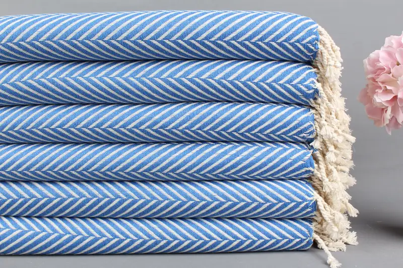 Türk Hamam Havlusu Sax Mavi Bej, Organik Pamuk, 40x69 İnç