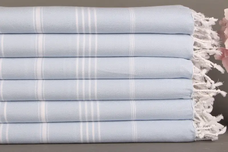 Bekarlığa Veda Havlusu Monogramlı Türk Organik Pamuk Bebek Mavisi Çizgili, 40x71 İnç