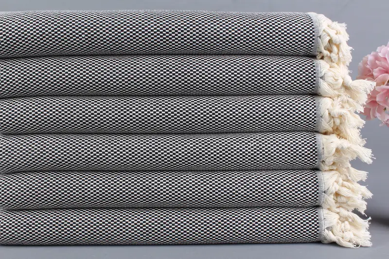 Kişiye Özel Türk Havlusu Organik Pamuk Siyah, Bej, 40x71 İnç