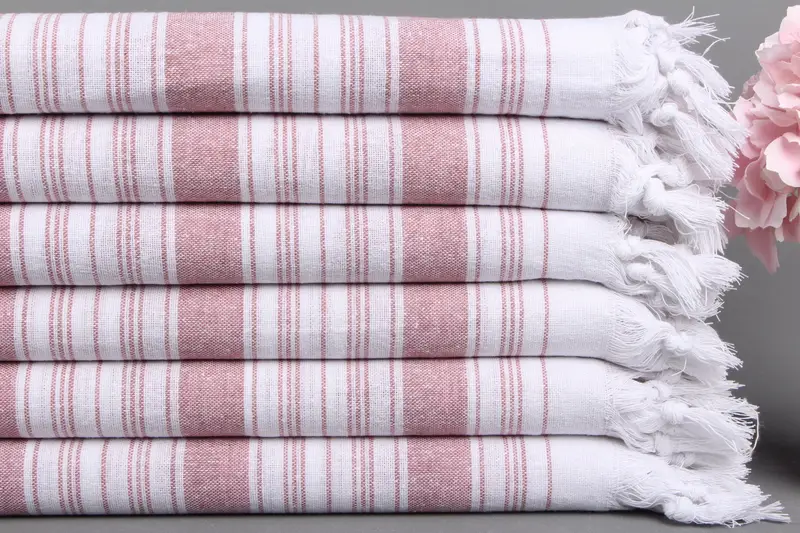 Organik Pamuk Gül Kurusu Plaj Havlusu, Çizgili Desen, 32x67 İnç