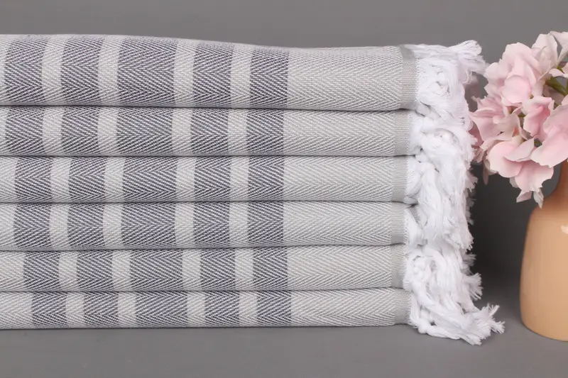 Türk Plaj Havlusu Kişiye Özel Organik Pamuk, Açık Gri-Koyu Gri, 36x67 İnç