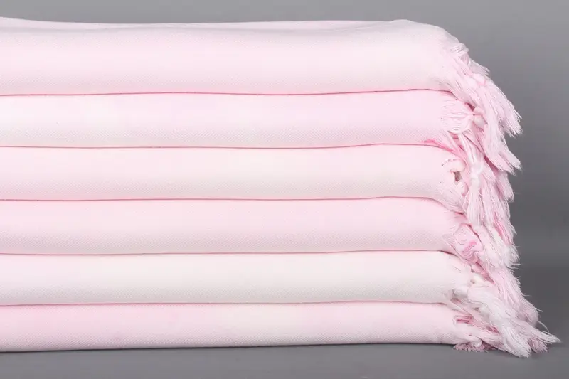 Türk Plaj Havlusu Organik Pamuk Beyaz-Pembe, 38x71 İnç