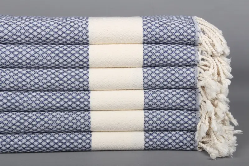 Geometrik Türk Plaj Havlusu Organik Pamuk Lacivert, 36x67 İnç