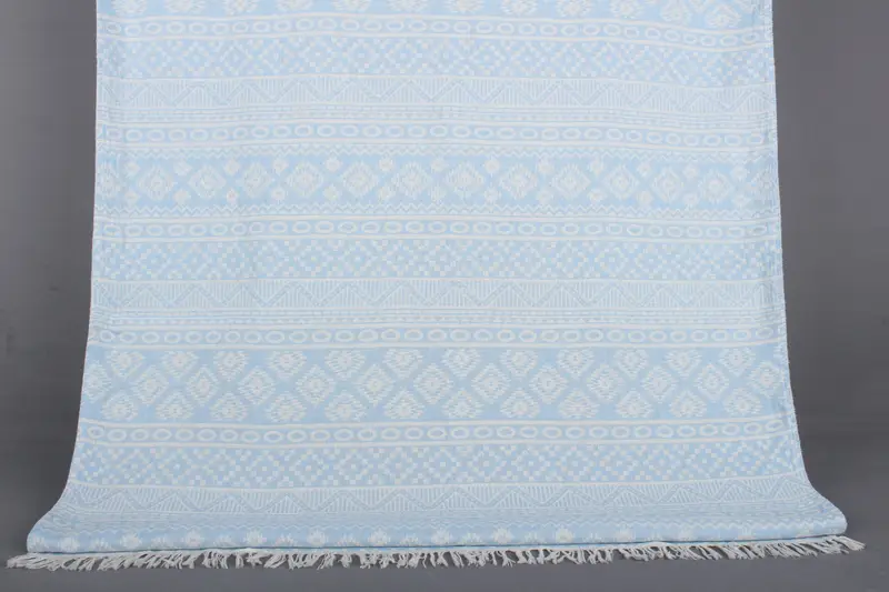 Açık Mavi Pamuklu Türk Plaj Havlusu, 36x67 İnç