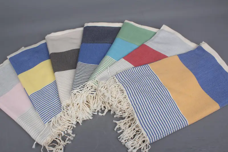 Kişiye Özel Türk Plaj Havlusu Organik Pamuk Çizgili Bej, 67x40 İnç