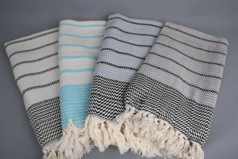 Diamond Havlu Kişiye Özel Organik Pamuk Plaj Havlusu, Bej, 40x79 İnç