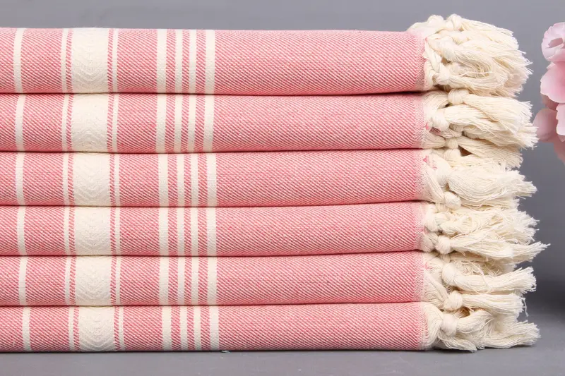 Türk Plaj Havlusu Organik Pamuk Pembe, 40x71 İnç
