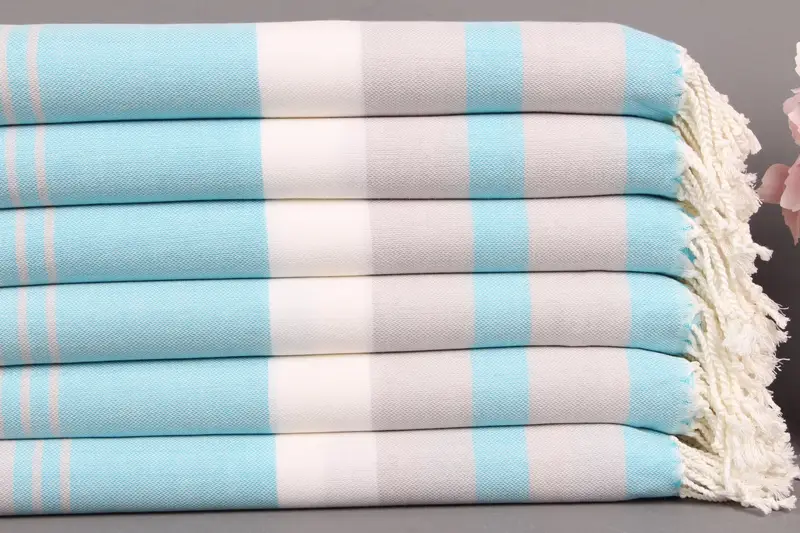 Organik Türk Havlusu Turkuaz-Gri Çizgili, 40x75 İnç