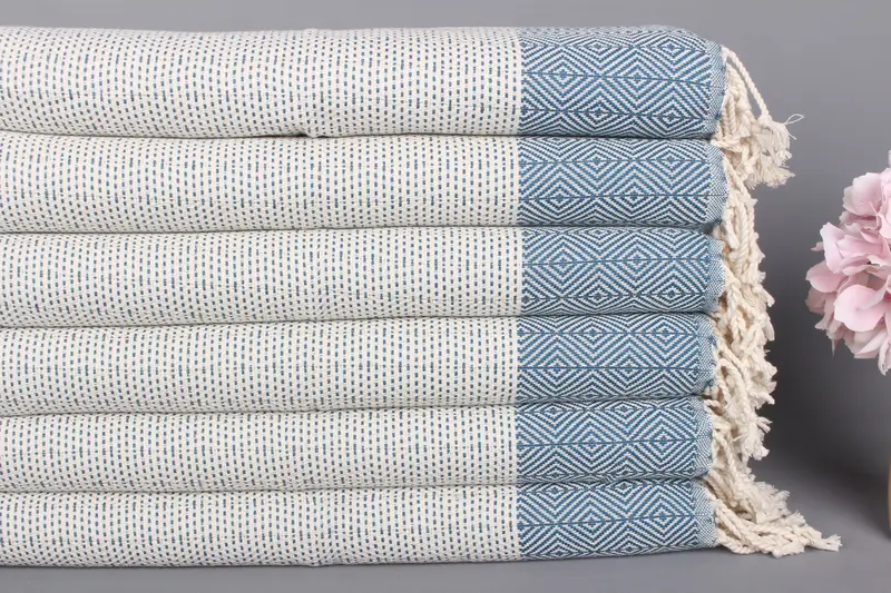 Petrol Mavisi Pamuklu Türk El Havlusu, Kişiye Özel Plaj Havlusu, 18x36 İnç