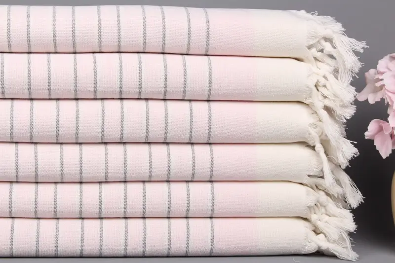Organik Mutfak Havlusu Monogram Açık Pembe Çizgili Havlu, 18x36 İnç