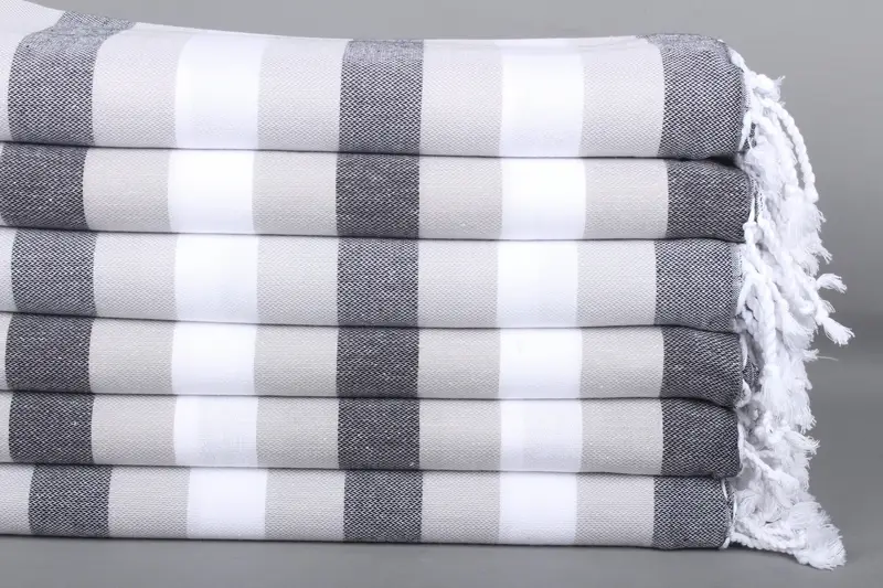 Çizgili Türk Plaj Havlusu Organik Pamuk Siyah-Gri, 40x71 İnç