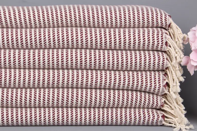 Monogramlı El Havlusu Kişiye Özel Organik Pamuk, Bordo Puantiyeli, 20x40 İnç