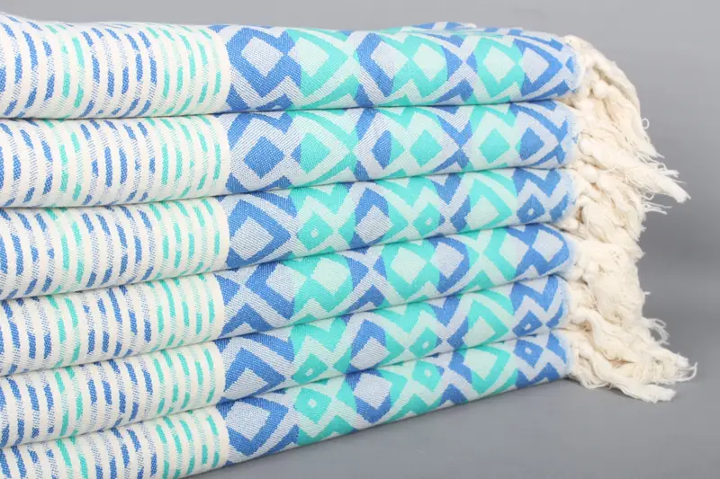 Diamond Havlu Organik Pamuk Banyo Havlusu Saks Mavi-Yeşil, 40x71 İnç