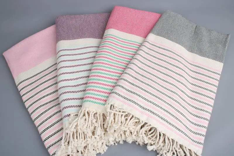 Türk Havlusu Organik Pamuk Geometrik Banyo Havlusu, Bej, 40x71 İnç