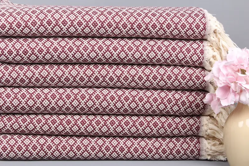 Özel Plaj Havlusu Türk Organik Pamuk Elmas Bordo, 40x71 İnç