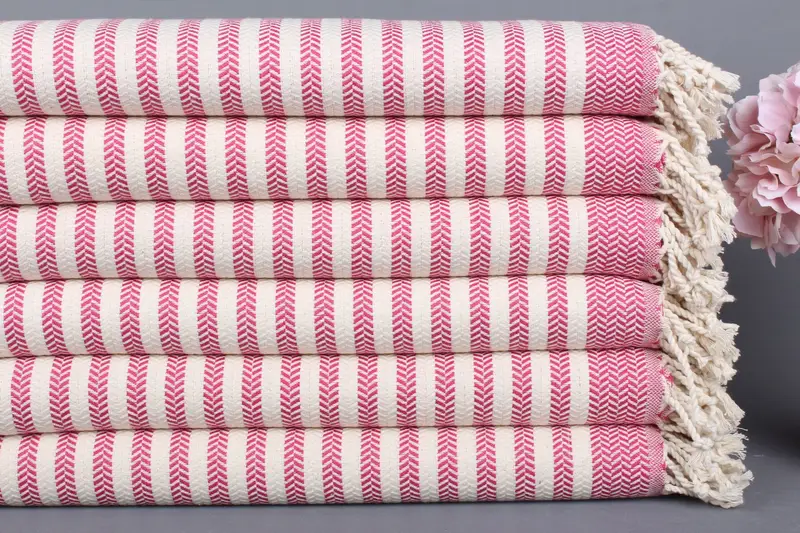 Organik Pamuk Fuşya Peştemal Türk Plaj Havlusu, 40x71 İnç