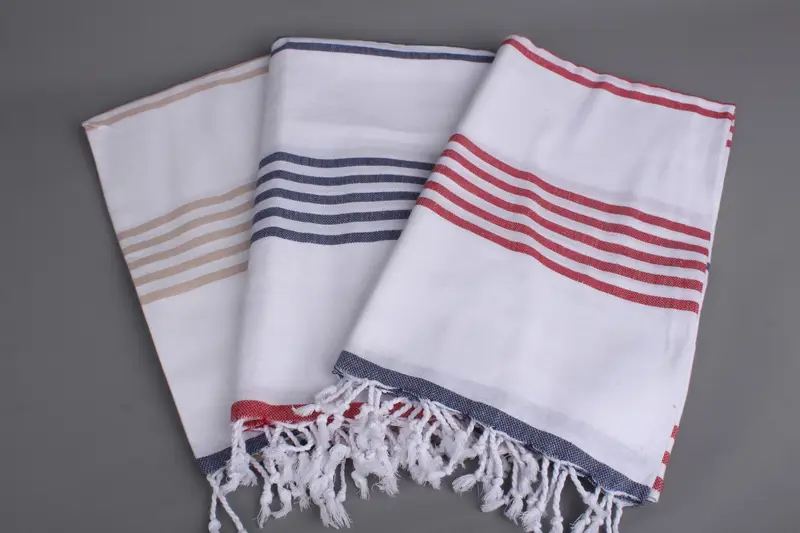 Çizgili Türk Plaj Havlusu Organik Pamuk Bej, 70x40 İnç