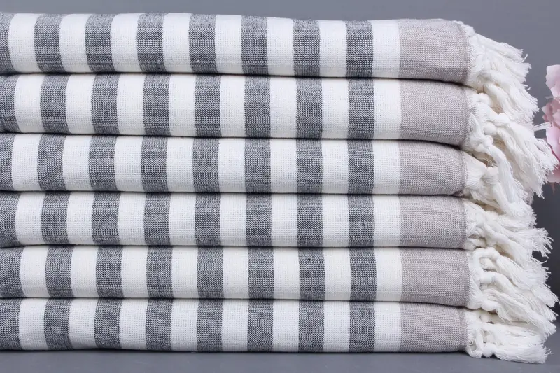 Kişiye Özel Türk Plaj Havlusu Kahverengi Çizgili, Monogramlı Spa Havlusu, 40x67 İnç