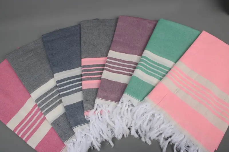 Çizgili Havlu Özel Organik Pamuk Türk Plaj Havlusu, Bej, 40x71 İnç