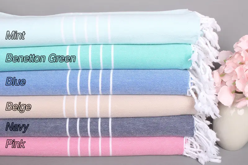 Çizgili Nakışlı Organik Pamuk Türk Plaj Havlusu, 70x40 İnç