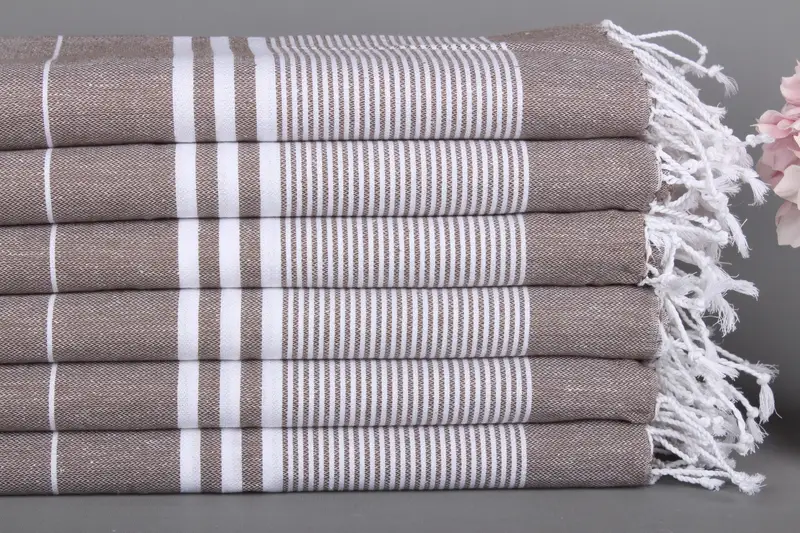 Mutfak Havlusu Çizgili Bulaşık Havlusu Kişiye Özel Kahverengi Pamuk 24x40 İnç