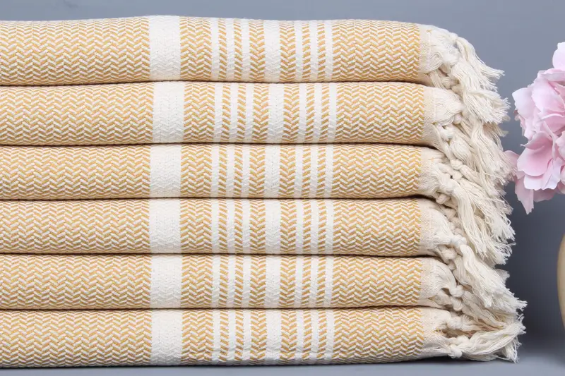 Monogramlı Türk El Havlusu İşlemeli Organik Pamuk Hardal Çizgili, 18x40 İnç