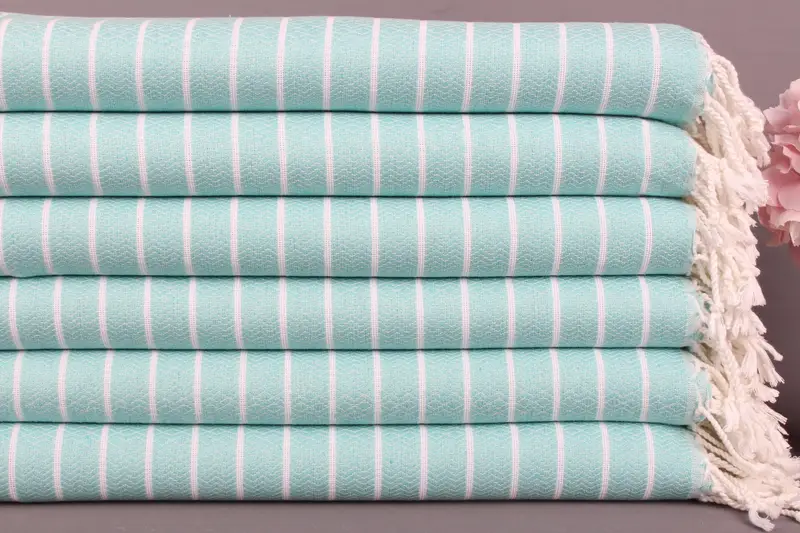 Kişiye Özel Türk Plaj Havlusu Monogramlı Organik Pamuk Nane, 40x71 İnç