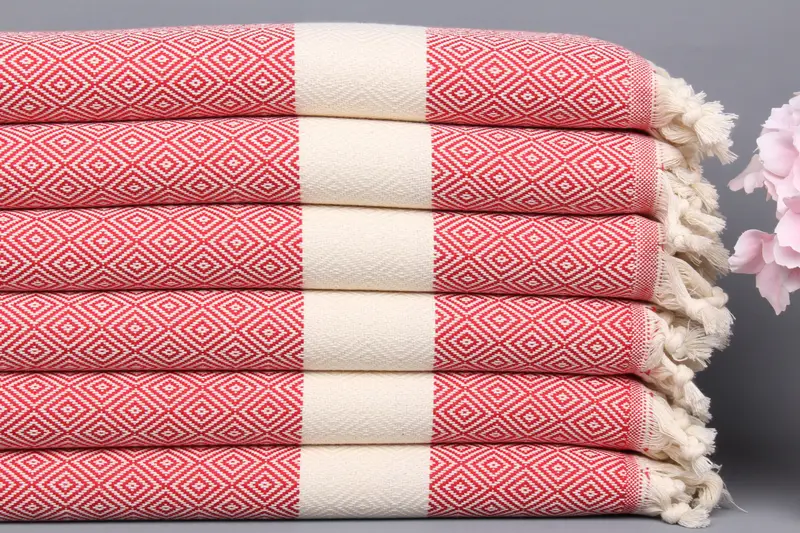 El Dokuma Bulaşık Havlusu Organik Pamuk Kırmızı Elmas, 20x36 İnç