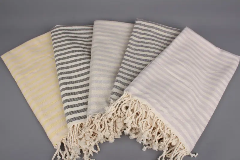 Kişiye Özel Türk Pamuk Havlu Bej Çizgili, 40x71 İnç