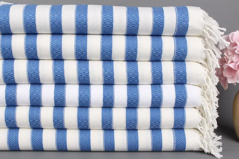 Kişiye Özel Türk Havlusu Organik Pamuk, Mavi Çizgili, Bej, 36x71 İnç