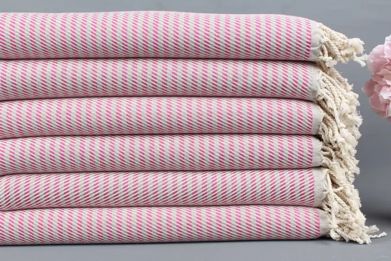 Düğün Hediyesi Havlu Fuşya-Gri Puantiyeli, Türk Hamam Havlusu, 38x71 İnç