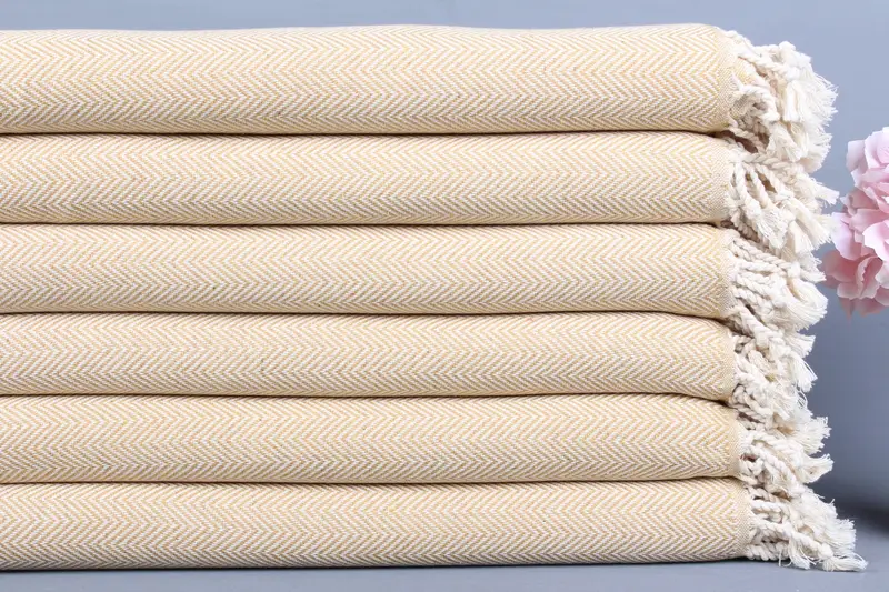 Organik Pamuk Havlu Hardal Balıksırtı Peştemal, 40x71 İnç
