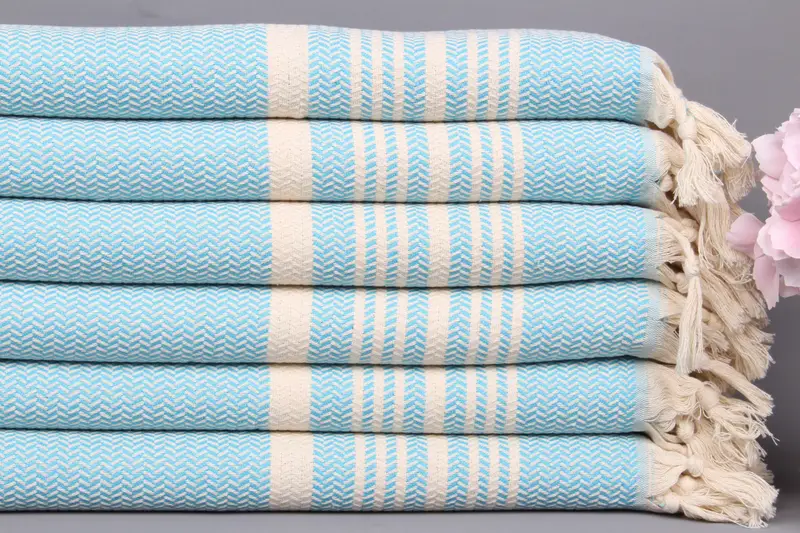 İşlemeli Monogram Türk El Havlusu Turkuaz Bej, 18x40 İnç