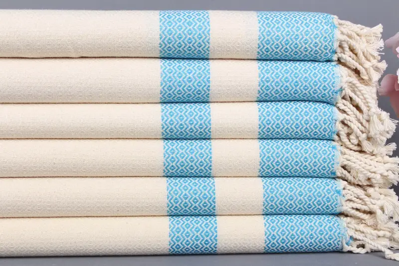 Kişiye Özel Turkuaz Geometrik Peştemal Plaj Havlusu, 40x71 İnç
